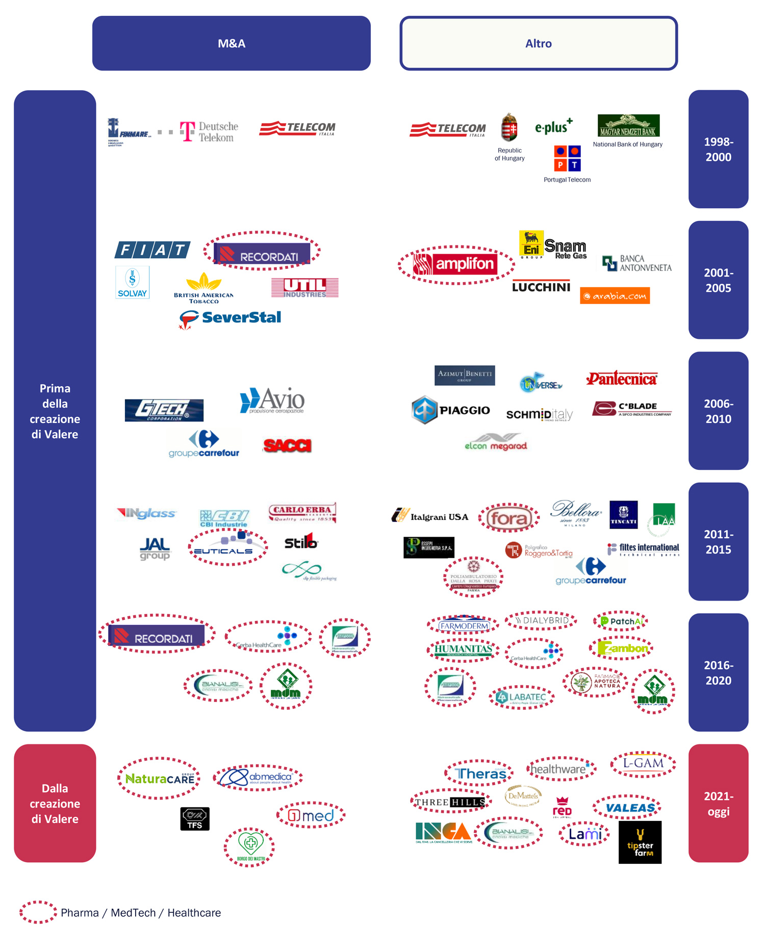 Abbiamo accesso a quasi tutte le aziende italiane nel settore farmaceutico e sanitario, da quelle più grandi alle PMI, ed in tutti i sottosettori; abbiamo rapporti con la maggior parte degli investitori istituzionali attivi in Italia, dai grandi fondi di Private Equity alle società di Venture Capital.